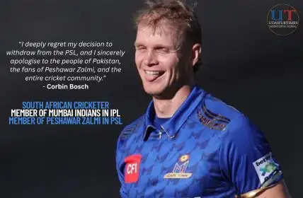 Corbin Bosh said, "I deeply regret my decision to withdraw from the PSL, and I sincerely apologise to the people of Pakistan, the fans of Peshawar Zalmi, and the entire cricket community. I understand that my actions have caused disappointment. I especially apologise to the loyal fans of Peshawar Zalmi for letting them down."